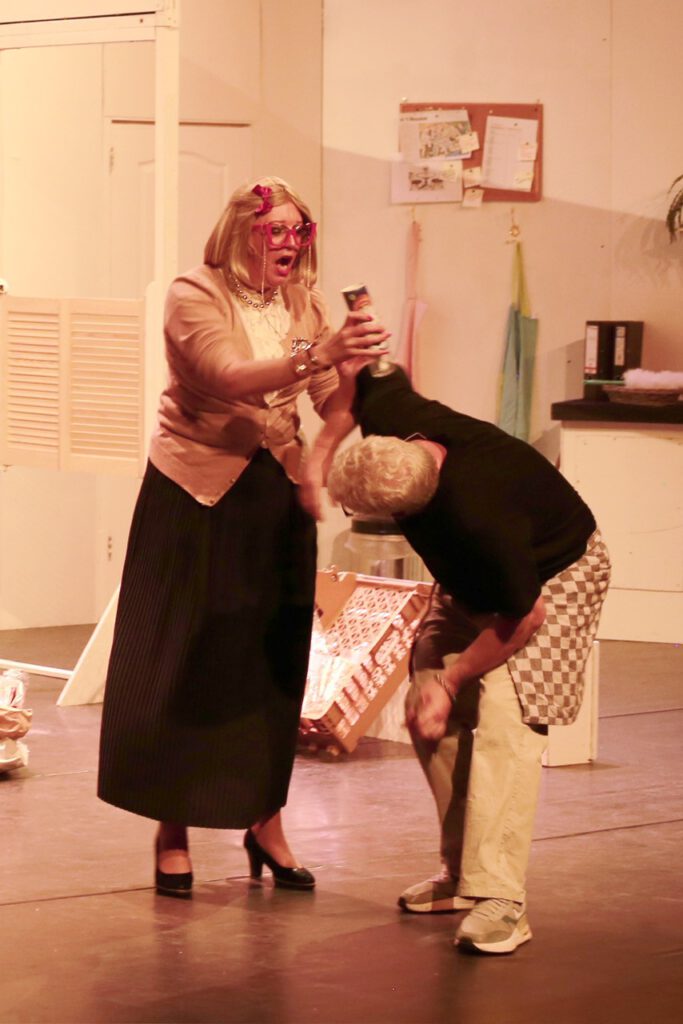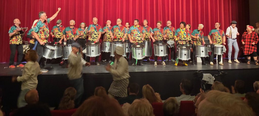 Aangezien dit jaar ons jubileumjaar is, het WAT bestaat 50 jaar, hebben we extra groots uitgepakt om u te laten meegenieten van deze feestelijke mijlpaal. Nadat iedereen hun plek voor onze voorstelling ‘High tea in bakkerij van Schie’ ingenomen had, startte onze regisseur met het openingswoordje, maar werd ruw verstoord door een hoop kabaal op de gang… Natuurlijk was dit zo gepland en voorbereid, maar dat wist u natuurlijk niet! De kleurrijke sambaband kwam al spelend binnengelopen om onze première extra luister te geven. Was het een leuke verrassing?